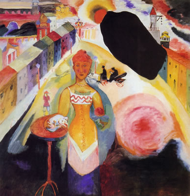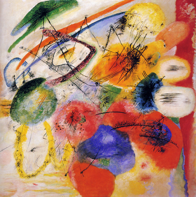 Kandinsky sieht sich zunehmend mißverstanden und sagt 'Ich will in der Harmonie der Meisterwerke der vergangenen Zeit keinen Punkt ändern, bekämpfen oder umwerfen. Ich will nicht der Zukunft ihre richtigen Wege zeigen. Abgesehen von meinen theoretischen Arbeiten, die bis jetzt objektiv wissenschaftlich viel zu wünschen übrig lassen, möchte ich nur gute, notwendige, lebendige Bilder malen, die wenigstens von wenigen Beschauern richtig erlebt werden '